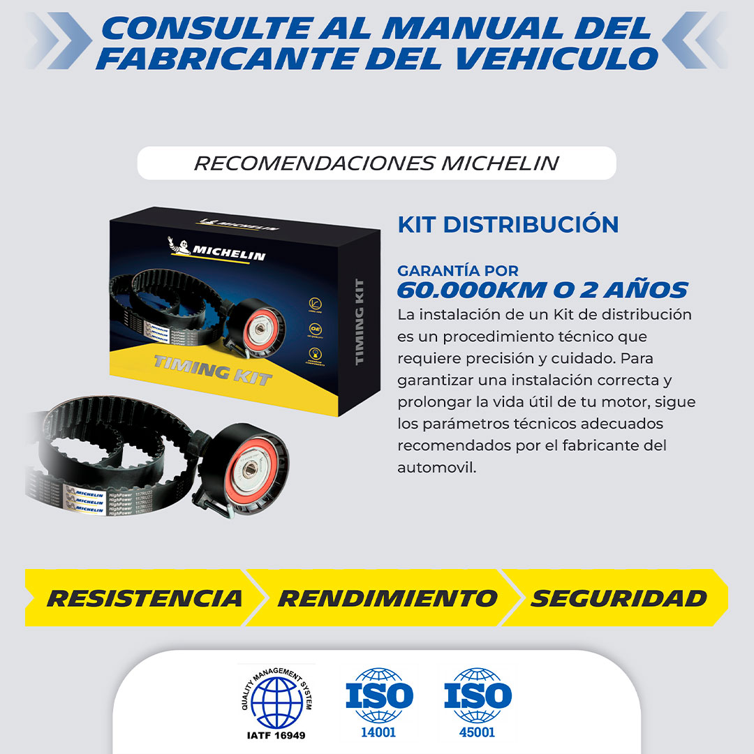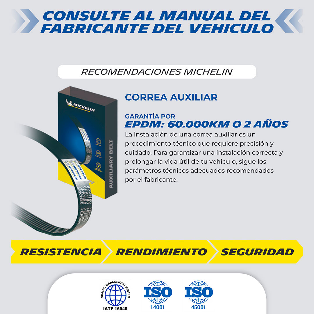 Los productos Michelin® están elaborados con altos estándares de calidad y con materiales debidamente seleccionados, además de que cumplen con todos los requisitos de rendimiento del fabricante de automóviles OE. Cada línea de producto Michelin® tiene su propia condición de garantía.